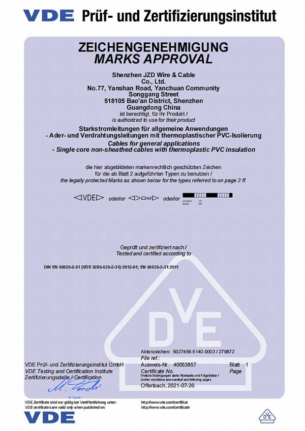 深圳建圳達電線電纜有限公司,成立于2000年,是一家電線電纜制造商,我們通過了世界各地不同市場的多數(shù)認證,如:CCC、RoHS、CB、SAA、TUV、VDE、PSE、BPS、UL、CSA。我們根據(jù)定制產(chǎn)品不斷更新新的認證。經(jīng)過數(shù)十年的發(fā)展,我們與來自世界各地的客戶建立了長期的合作關(guān)系。我們曾經(jīng)是菲律賓機場,,柬埔寨的電力站,美國的醫(yī)院,工廠,埃塞俄比亞的水電站項目。我們是一家值得信賴的電線供應(yīng)商。
